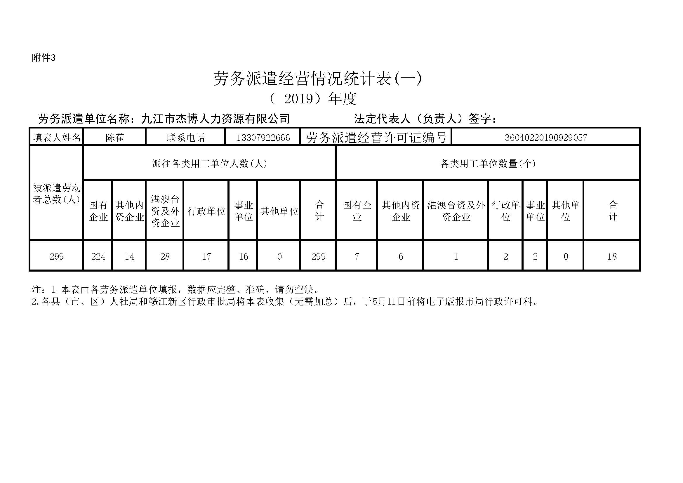 2019年勞務(wù)派遣經(jīng)營情況公示