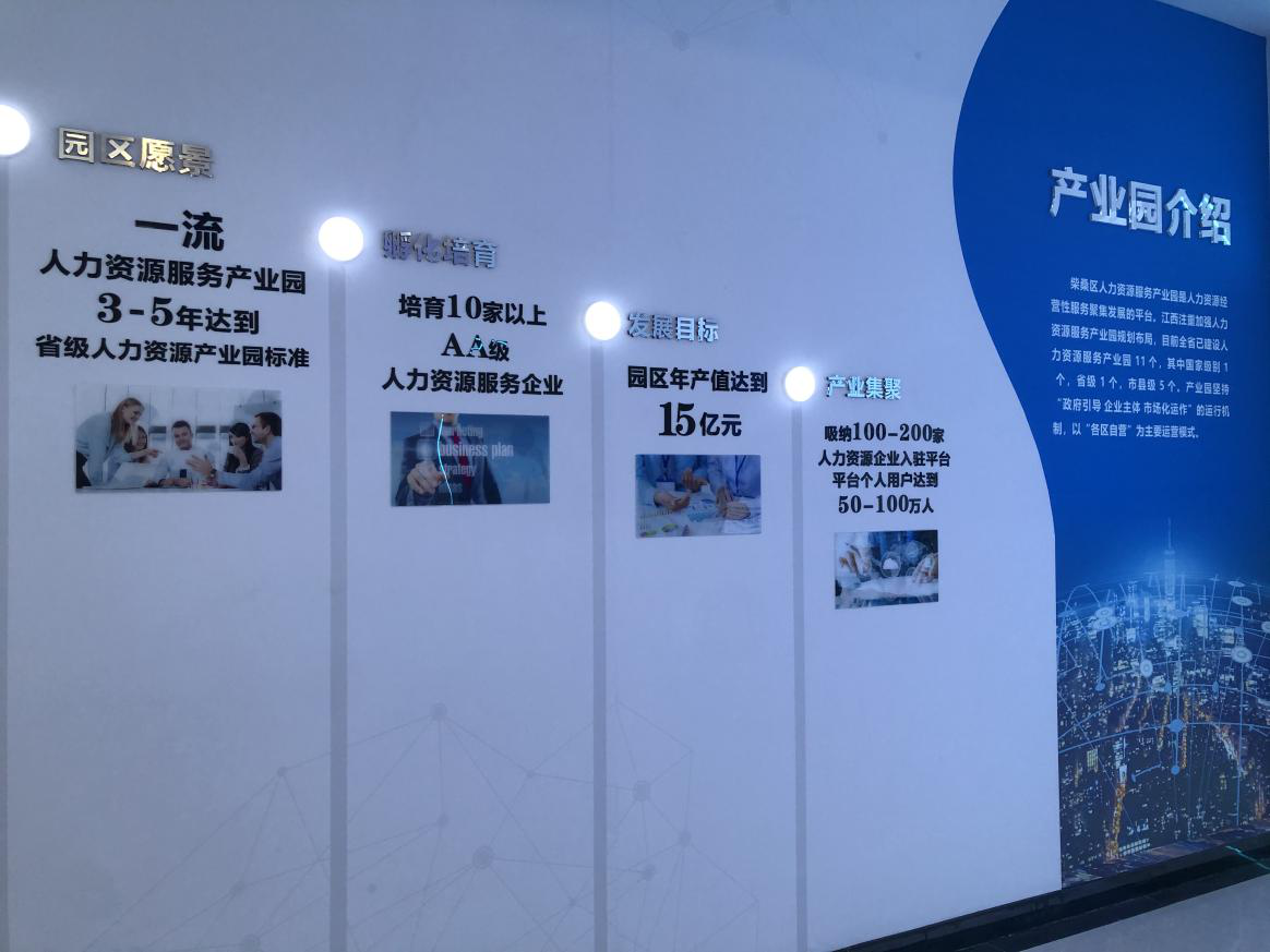 產(chǎn)業(yè)園展廳大門(mén)左側(cè)高大的墻壁上,鑲嵌著習(xí)近平總書(shū)記提出的--“發(fā)展是第一要?jiǎng)?wù)、人才是第一資源、創(chuàng)新是第一動(dòng)力”的21個(gè)銀光閃閃的大字。右側(cè)墻壁上是入住產(chǎn)業(yè)園人力資源企業(yè)的燈箱LOGO,顯示著柴桑區(qū)人力資源產(chǎn)業(yè)園及園區(qū)企業(yè),決心按照習(xí)近平總書(shū)記指引的方向,本著服務(wù)人民、回饋社會(huì)的初心,全力做大做強(qiáng)柴桑區(qū)人力資源服務(wù)產(chǎn)業(yè)。