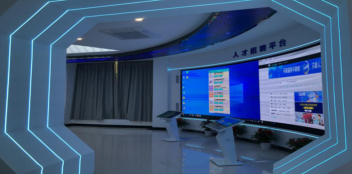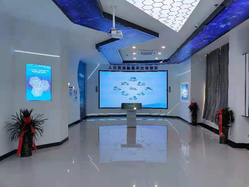 只用了短短不到80天的時(shí)間,800多平米的產(chǎn)業(yè)園展廳就裝修竣工。展廳布局新穎,劃分合理,設(shè)有黨建宣傳、人力資源服務(wù)平臺(tái)展示、VR視頻培訓(xùn)、入住企業(yè)集中辦公、會(huì)議室兼商務(wù)談判室等多個(gè)功能區(qū)域。